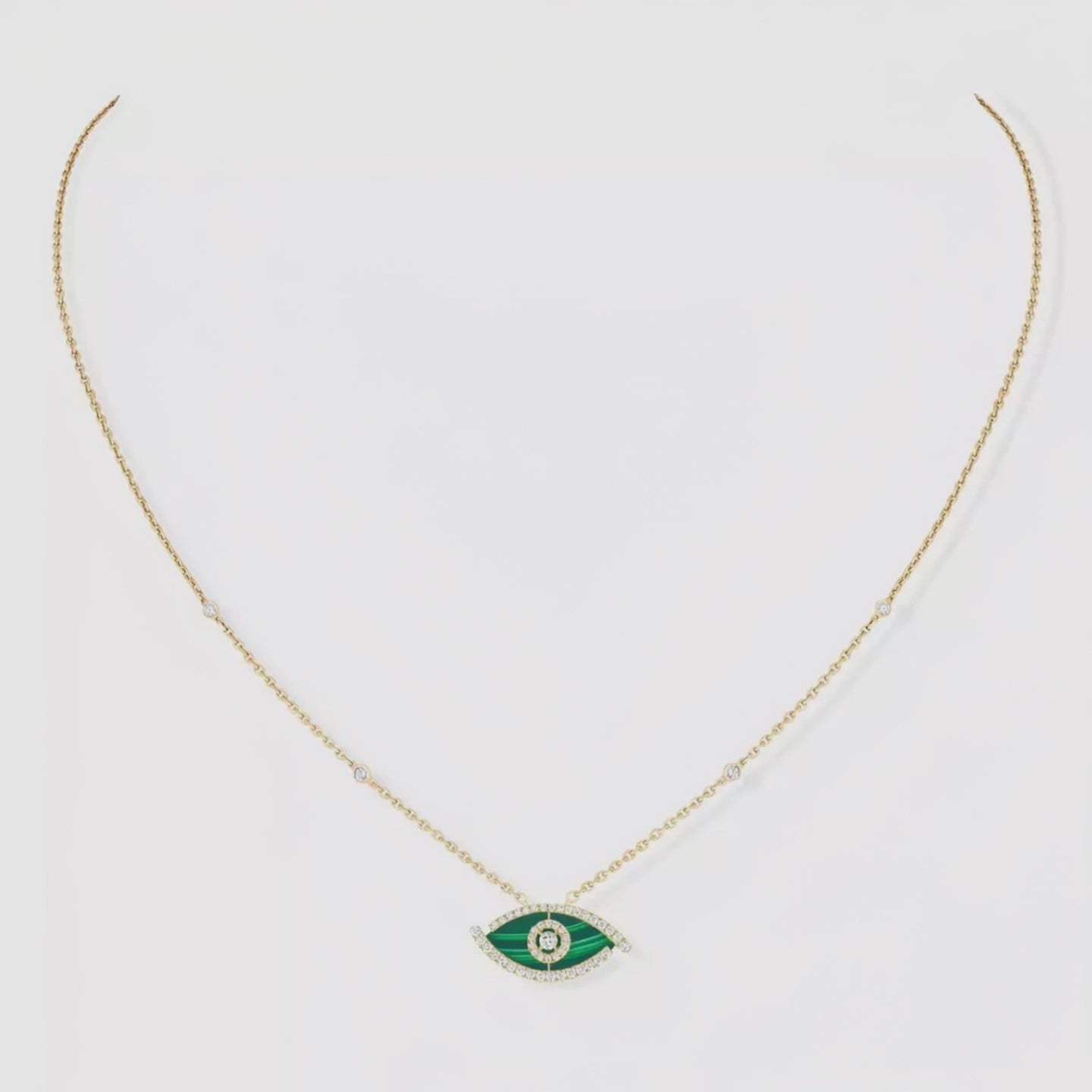 Combining the magic of green with the elegance of gold, Emeris is one of the most sophisticated interpretations of modern jewelry. The eye motif at the center is not only a magnificent design detail but also a protective symbol. The deep green of malachite, combined with the light of diamonds, creates a unique energy and sparkle with every glance.