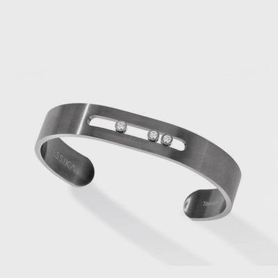 Combining the powerful, modern texture of titanium with the sophisticated sparkle of diamonds, Loryx is one of the most ambitious interpretations of contemporary jewelry. The masculine power of the matte surface is balanced by the dynamic sparkle of the three diamonds at the center, creating a timeless glamour on the wrist.