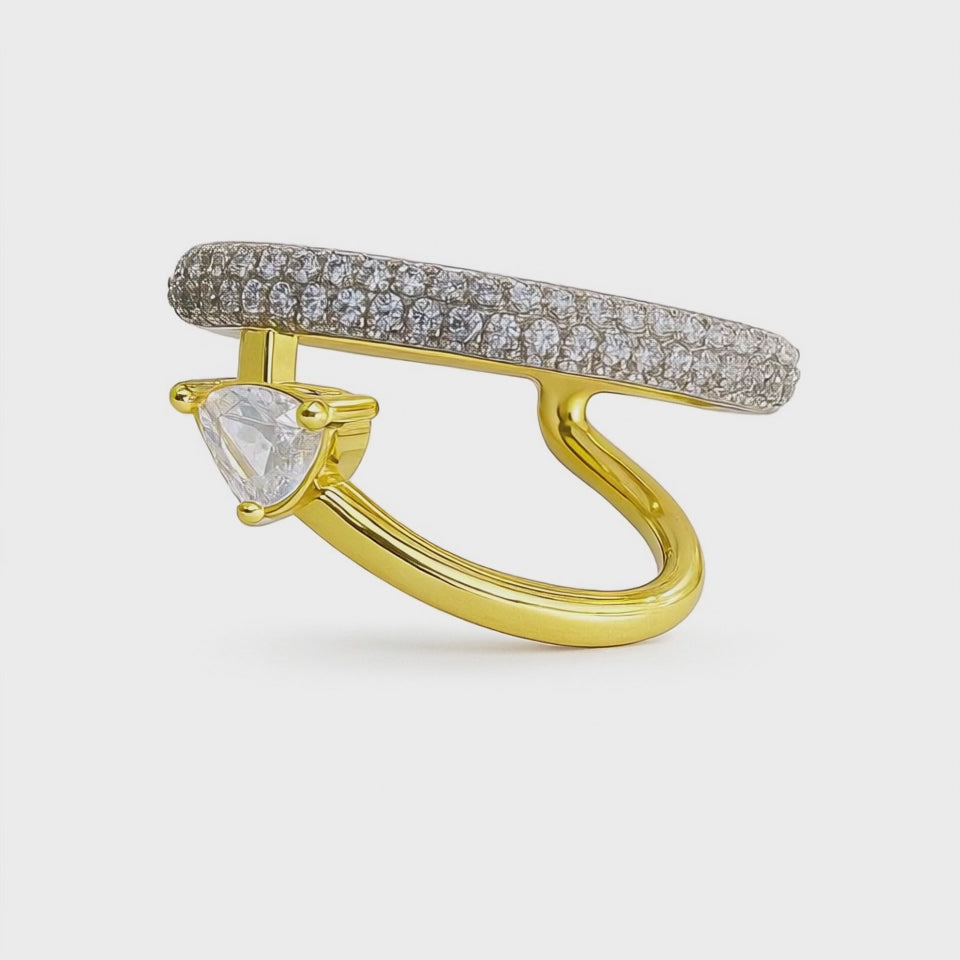 Swerra, inspired by the English word "swerve," is a unique form. Elegantly enveloping the ear with its gold casing, this earcuff offers a modern sparkle with its array of sparkling stones along the top, while its spiral shape creates a distinctive look from every angle.