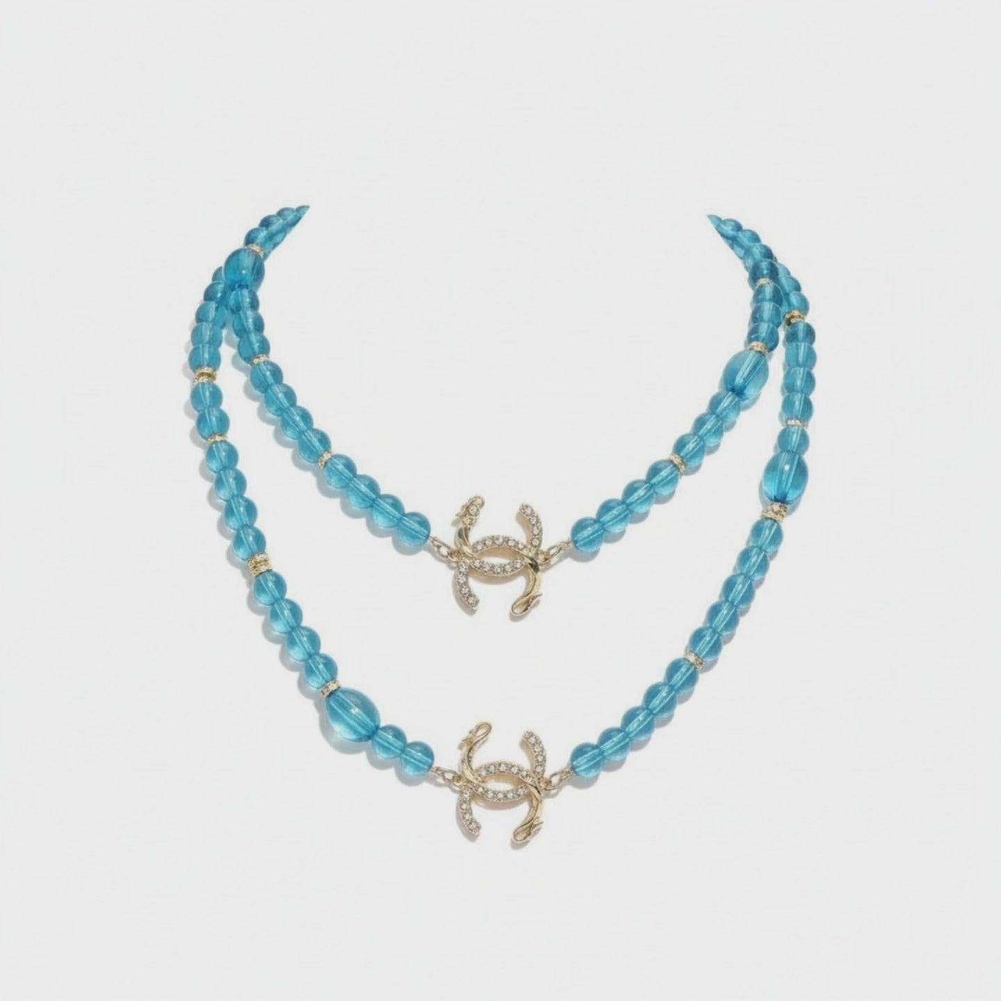 Aqua Lumière Kolye, denizin berrak mavisini ve ışığın büyüleyici parıltısını bir araya getirerek tasarlanmıştır. Zarif cam boncukların akışkan dizilimi, suyun huzur verici dalgalarını anımsatırken, ortadaki parlak dokunuşlar modern bir lüks hissi yaratır.
