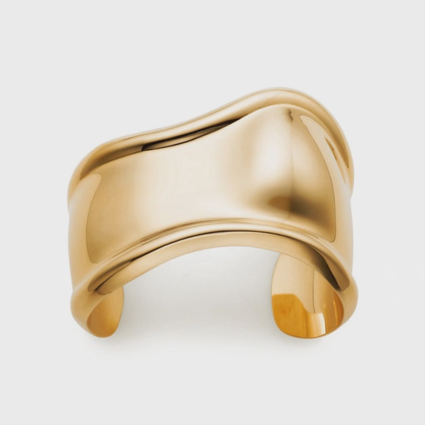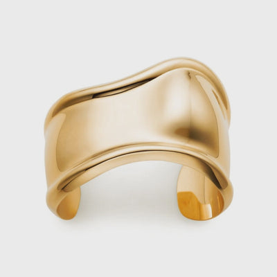 Altının heykelsi akışını yansıtan “Aurelia Drift Kelepçe”, dalgalı formuyla zamansız bir ihtişam sunar. Parlak yüzeyi ışığı her açıdan yansıtarak bileğinizde sanatsal bir duruş sergiler. Cesur hatları ve organik kıvrımlarıyla modern bir sanat eseri gibi görünen bu kelepçe, hem günlük şıklığa sofistike bir dokunuş katar hem de özel anların güçlü imza parçası olur.