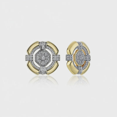 Aurum Crest Küpe, zamansız gücün ve zarafetin modern bir simgesi. Sekizgen formun merkezinde yer alan taş bezemeli yüzey, ışığı kusursuz şekilde yansıtarak göz kamaştırıcı bir etki yaratır. Altın tonlarla çerçevelenen ve geometrik çizgilerle tamamlanan bu özel tasarım, klasik zarafeti çağdaş bir yorumla buluşturur. Gündüzden geceye her anınıza prestij katmak için tasarlandı.