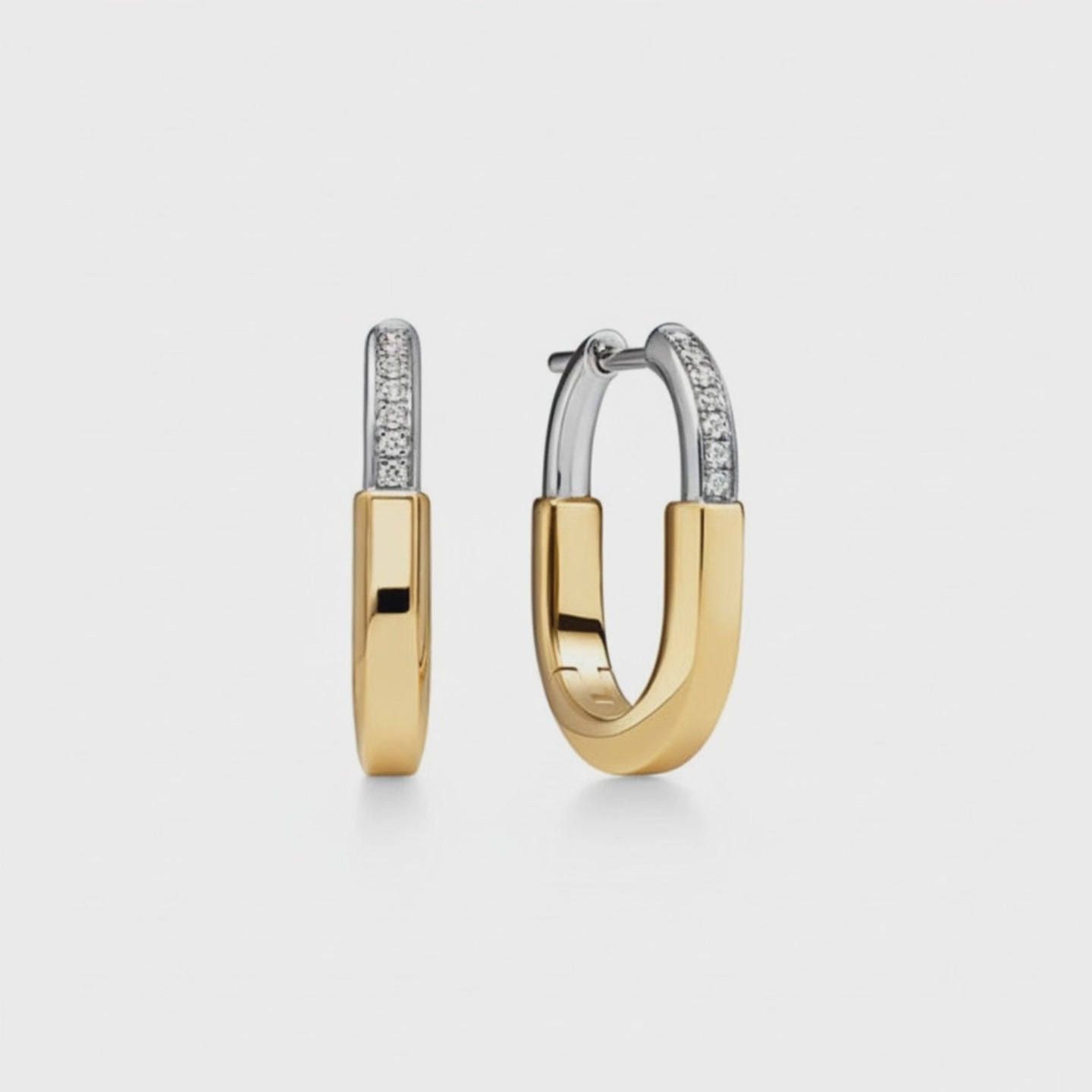 Altın ve beyaz tonların zarif birleşimiyle tasarlanan Bicolor Grace Küpe, modern şıklığı ve zamansız zarafeti bir arada sunar. Üst kısmında yer alan ince taş detayları, tasarıma sofistike bir ışıltı katarken iki renkli formu güçlü bir kontrast oluşturur. Günlük stilinize zarif bir dokunuş yaparken özel davetlerde de göz alıcı bir tamamlayıcıdır.