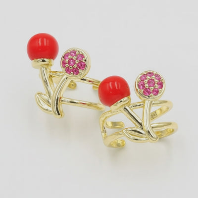 Görünümüne oyunbaz bir dokunuş ekle: Bloomloop Earcuff, kırmızı ve pembe tonların enerjisini floral formlarla buluşturuyor. Minimal ama dikkat çekici yapısı, kulağın kıvrımında zarif bir dans gibi ilerliyor. Neşeli detaylar ve ışıltılı taşlar, hem gündüz hem gece kombinlerinin vazgeçilmezi olacak.