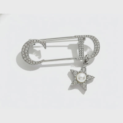 Celeste CD Broş, serin gümüş tonunda pavé taşlarla işlenen “C” ve “D” baş harflerini modern bir güvenlik iğnesi formunda birleştirir; ucundaki inci merkezli yıldız charm yürüdükçe hafifçe salınır ve ışığı nokta nokta toplar. Sonuç net: gece göğü etkisi veren soğuk bir ışıltı, fotoğraflarda tertemiz okunan grafik bir siluet. Beyaz gömlek yakasında sofistike, siyah veya lacivert blazer üzerinde iddialı, denim ve tişörtle şehirli; ipek elbise omzunda ise tek bakışta “final dokunuşu”. Sert ve zarif dengenin verdiği tavır, feminen detayları punk bir çizgiyle bağlar; başka takılarla yarışmaz, ince halka küpe veya sade bir zincirle tamamdır. Denge merkezi kumaşı çekiştirmeden sabitler, uzun saatler formunu korur.
