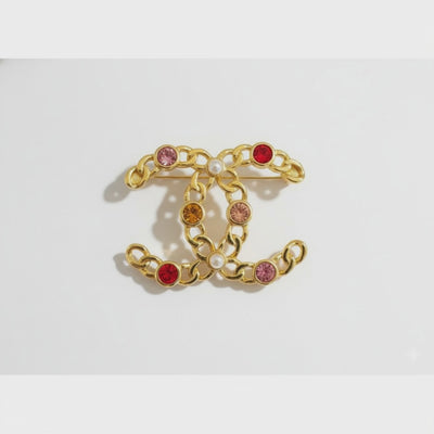 Chromalink Broş, zincir halkalarıyla örülmüş altın tonlu siluetin içine yerleştirilen renkli taşlar ve inci dokunuşuyla canlı bir ritim yaratır. Kırmızı, pembe ve bal tonları her harekette farklı yanar; inciler saten bir sakinlik katarken zincirin dokusu parçaya arşiv hissi verir. Fotoğraflarda net, yakından zengin: yuvarlak taş yatakları ve bağlantıların pürüzsüz geçişi işçiliği açıkça gösterir. Beyaz gömlek yakasında taze, koyu blazer üzerinde iddialı, denimle şehirli durur; sıcak paleti krem, siyah, lacivert ve toprak tonlarıyla kusursuz eşleşir. Tek başına “statement”, ince halka küpe veya sade bir zincirle dengeli bir finaldir.
