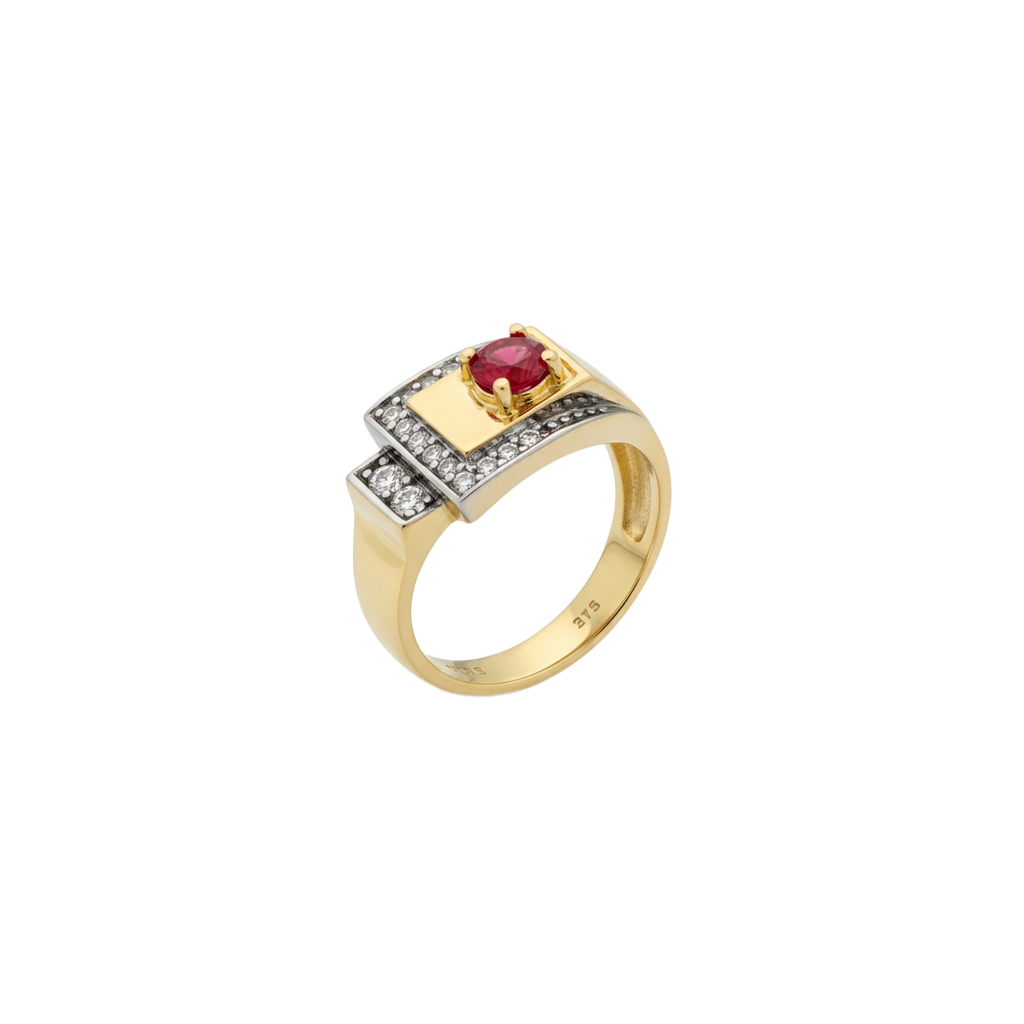 Crimson Pavilion Yüzük, üstte yükselen kare platformu ve tam merkezdeki kırmızı taşla sahne etkisi yaratan mimari bir parça. Platformun etrafında yer alan parlak taş şeridi, kırmızıyı çerçeveleyerek bakışı tam ortaya toplar. Kalın ama rafine gövdesi sayesinde elde güçlü durur, klasik yüzüklerden net şekilde ayrılır. Kırmızı detaylı takıları seven ama fazla romantik görünmek istemeyenler için modern ve otoriter bir yorum.
