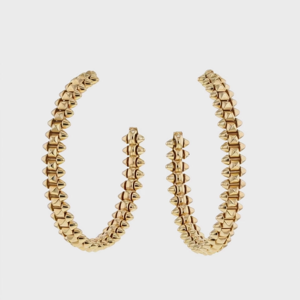 Cesur detaylarıyla öne çıkan Dominion Edge Küpe, güçlü bir karakteri modern zarafetle birleştirir. Altın tonlarının sofistike ışıltısı, sivri dokularla birleşerek dinamik ve iddialı bir görünüm sunar. Hem günlük stillere asi bir enerji katar hem de özel anlarda güçlü bir imza parçası olarak öne çıkar.