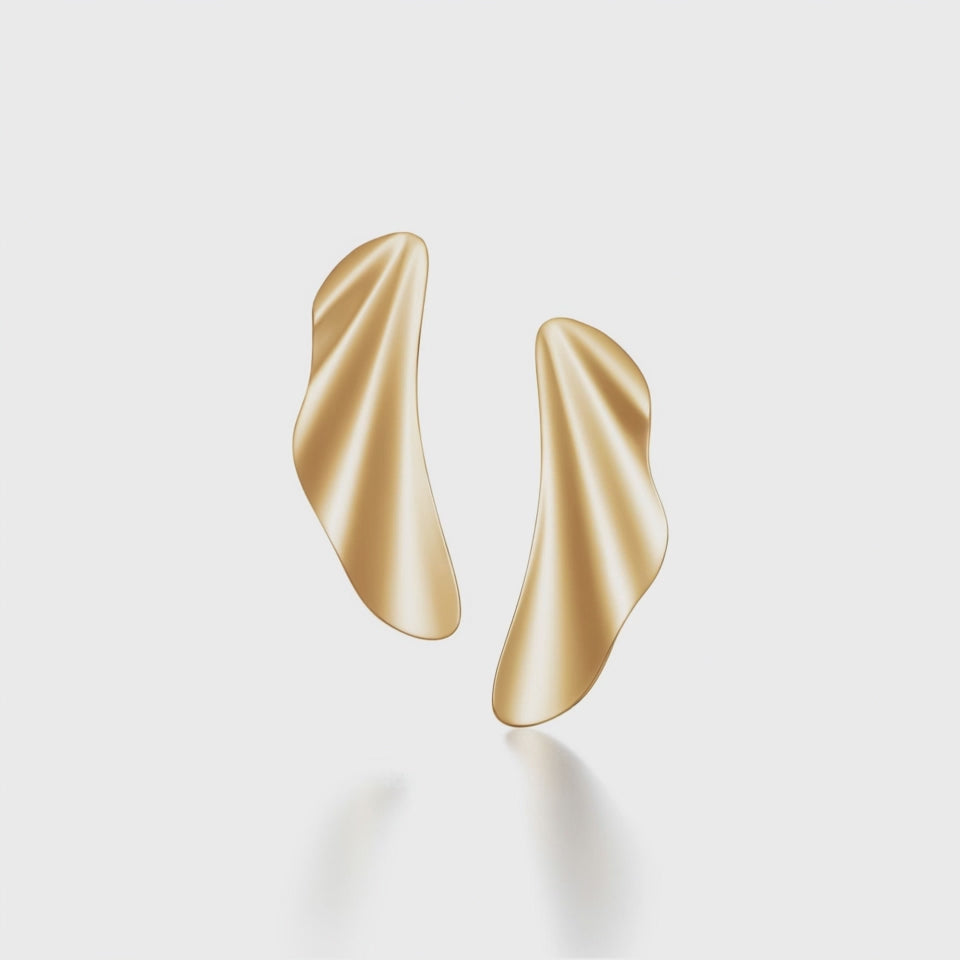Elyra Küpe, dalga formlu yüzeyiyle ışığı zarifçe yansıtırken, modern sanatın içsel sadeliğini kulağınızda taşır.
