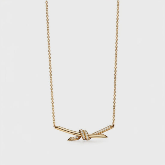 Sonsuz bağlılığın ve zarif dayanıklılığın sembolü olan “Eterna Knot Kolye”, ince altın zinciri ve pırlanta detaylı düğüm tasarımıyla zamansız bir ihtişam sunar. Modern sadeliğiyle günlük şıklığa sofistike bir dokunuş katarken, özel anlarda da güçlü bir imza parçasına dönüşür.
