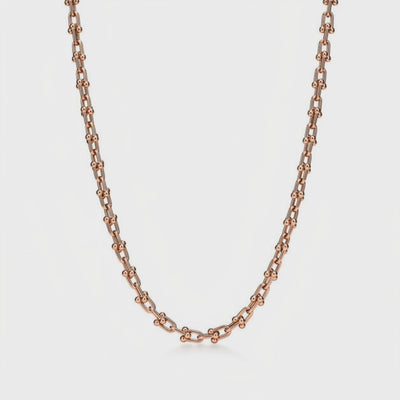 Zamansız bağların modern yorumu olan “Eterna Linkage Kolye”, rose altın tonundaki zarif zincir halkalarıyla güçlü ve sofistike bir duruş sergiler. Minimal tasarımı sayesinde hem tek başına sade bir şıklık sunar hem de katmanlı kullanımda stilinizi tamamlayan özgün bir imza parçası olur.