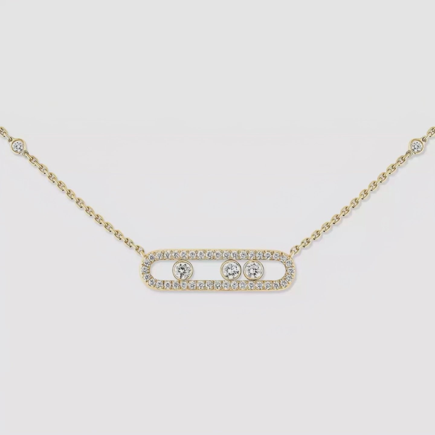 Zamansız zarafetiyle “Eterna Trio Kolye”, üç pırlantanın mükemmel uyumunu altın çerçeve içinde göz alıcı bir dengeyle sunar. İnce zinciri ve modern tasarımıyla boynunuzda sofistike bir parıltı yaratırken, üç taşın sembolize ettiği birlik, denge ve sonsuzluğu taşırsınız. Günlük şıklığı yüceltirken, özel anlarda da zarafetin güçlü bir imza parçası olur.