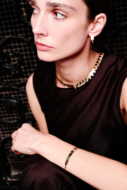 Güneşin ışık saçan zarafetinden ilham alan “Helia Spire Kolye”, üçgen formlu altın parçaların kusursuz dizilimi ve uçlardaki parlak taş detaylarıyla modern bir ihtişam sunar. Işığı her açıdan yansıtan geometrik tasarımı, boynunuzda hem güçlü hem de sofistike bir duruş sergiler. Günlük şıklığa özgün bir enerji katarak, özel davetlerde de zarafetin imza parçasına dönüşür.
