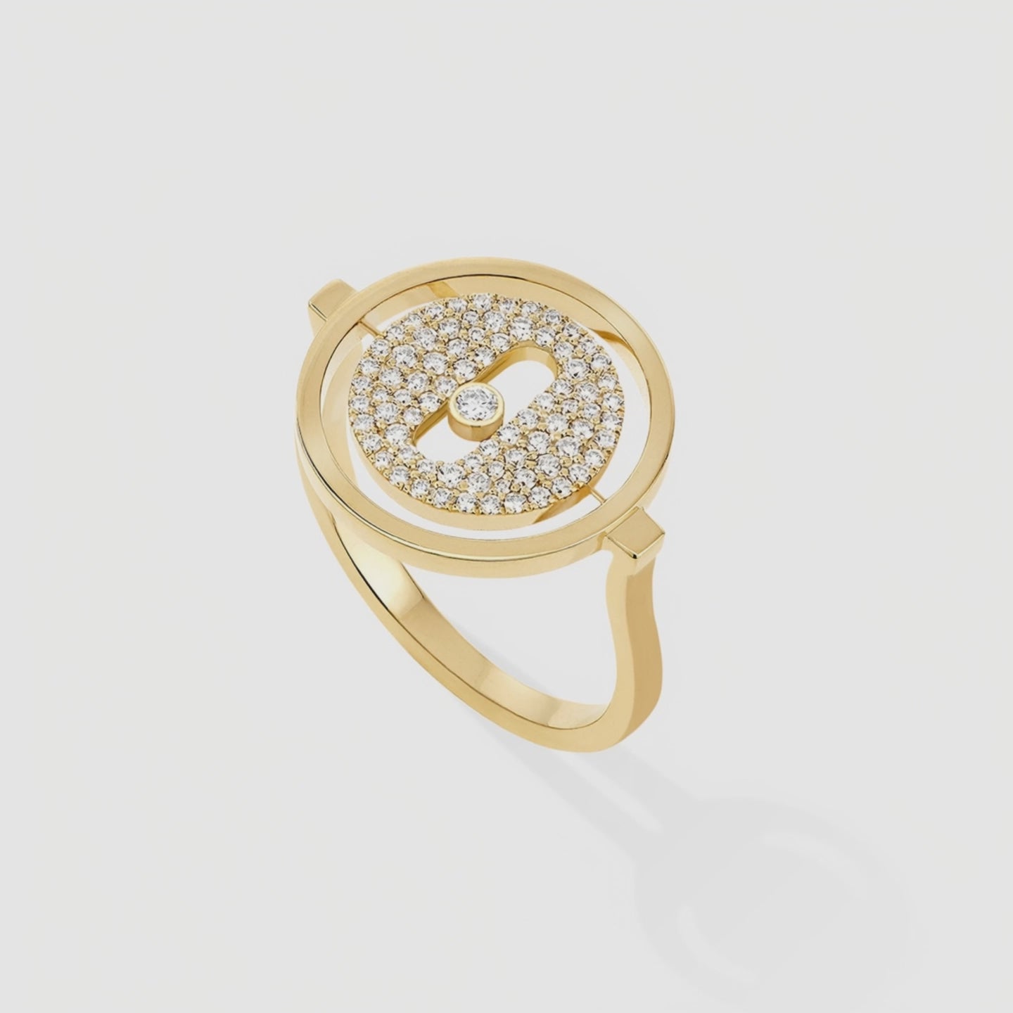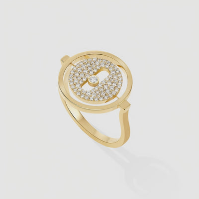 Lumen Disk Yüzük, ince çerçeveli dairesel formun içindeki tam pavé disk ve merkezde yüzen tek taşla net bir ışık odağı kurar. Geometrik halka detay, parmak üzerinde modern bir mimari etki yaratır; parlak yüzeyler ışığı temizce toplar. İnce gövde dengeli oturur, tek başına güçlü bir ifade verir ve minimal stilleri tek dokunuşla yükseltir.