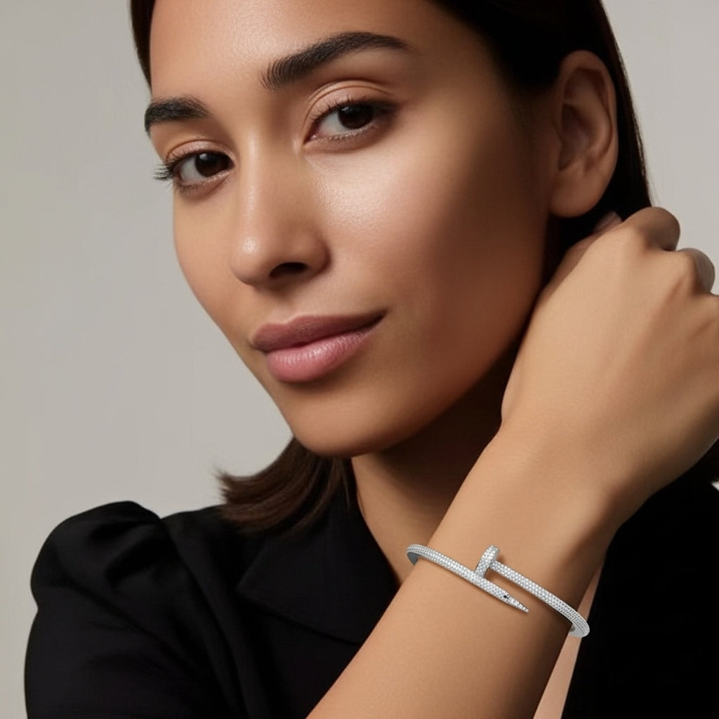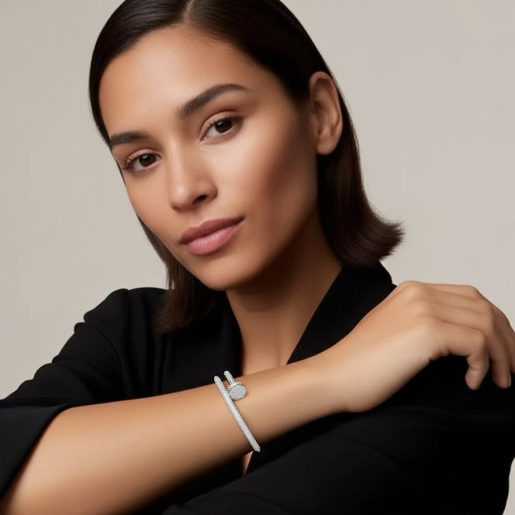 Işıltının en modern hali. Zarif kıvrımlı formu, gücü ve sürekliliği simgelerken taşlarla kaplı yüzeyi göz alıcı bir parlaklık sunar. Lustro Coil Kelepçe, hem gündelik şıklığa sofistike bir dokunuş katar hem de özel anlarda ikonik bir imza parçasına dönüşür.
