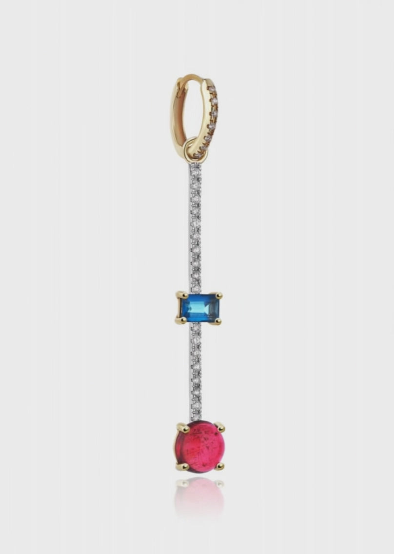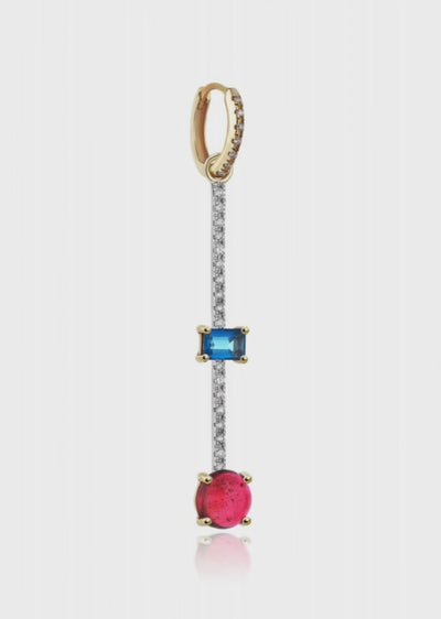 Orion Line, gökyüzünden ilham alan kusursuz bir dengeyle tasarlandı. Üstteki safir tonlu baget taş, alttaki ateş kırmızısı yuvarlak taşla buluşurken; aralarındaki ince ışıltılı hat, yıldızlar arası bir rota gibi parlar.