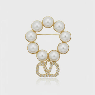 Pearl Wreath Broş, büyük boy parlak incilerin oluşturduğu kusursuz bir çelenkle bakışı tek hamlede merkezde toplar. Altın tonlu ince çerçeve her inciyi tek tek vurgular; yüzeydeki saten parlaklık yürüdükçe yumuşak bir ışıma üretir. Alttaki pavé logolu charm, hareketle hafifçe salınarak parçaya canlılık ve zarif bir final verir. Beyaz gömlek yakasında sofistike ve sakin, koyu blazer üzerinde belirgin ve iddialı, ipek elbise omzunda ise fotoğraflarda tertemiz okunan bir odak etkisi sağlar. Minimal mücevherlerle çabasız uyum yakalar; tek başına kullanıldığında bile kombini “bitmiş” gösterir.