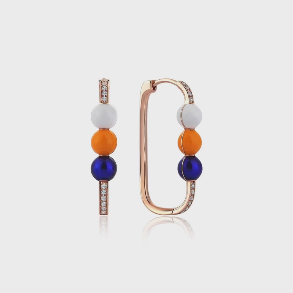 Soleil Glacé, güneşin sıcak tonlarını ve buzun keskin berraklığını tek bir formda buluşturur. Rose altın tonlu çerçeveye yerleştirilmiş zarif taş çizgileri, üç farklı renkten oluşan parlak kürelerle tamamlanır: beyazın saflığı, turuncunun enerjisi ve lacivertin derinliği bir araya gelerek göz alıcı bir kontrast yaratır.