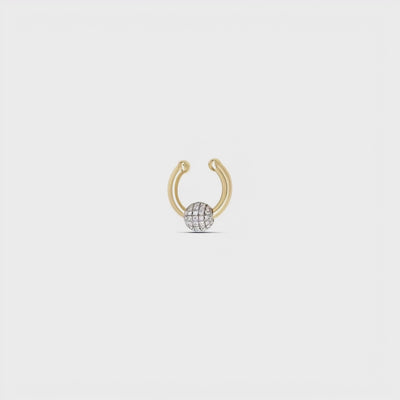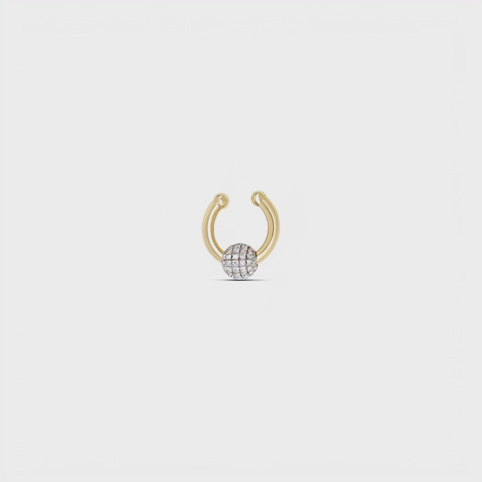 Sphère Earcuff, altın tonlu “horseshoe” kavisin merkezine yerleşen pavé kürenin enerjisiyle kulağa taşınan modern bir tılsımdır. U-şeklinin minimalist akışı, kürenin her yüzeyine serpiştirilen mikro kristallerle kırılır; en ufak baş hareketi ışığı çoklu yansımaya bölerek urban-şıklığa beklenmedik bir kıvılcım ekler. Kulak deliği gerektirmeyen tasarım, gündüz denim-blazer rahatlığından gece kadife elbise zarafetine kadar tüm stil alanlarını tek hamlede yükseltir; hafif formu sayesinde gün boyu varlığını hissettirmez, ancak gözlerin anında odaklandığı nokta olmayı başarır. Sphère Earcuff, şehir temposunda özgüvenli bir parıltı arayanlara “tek parça, maksimum etki” sözü verir.