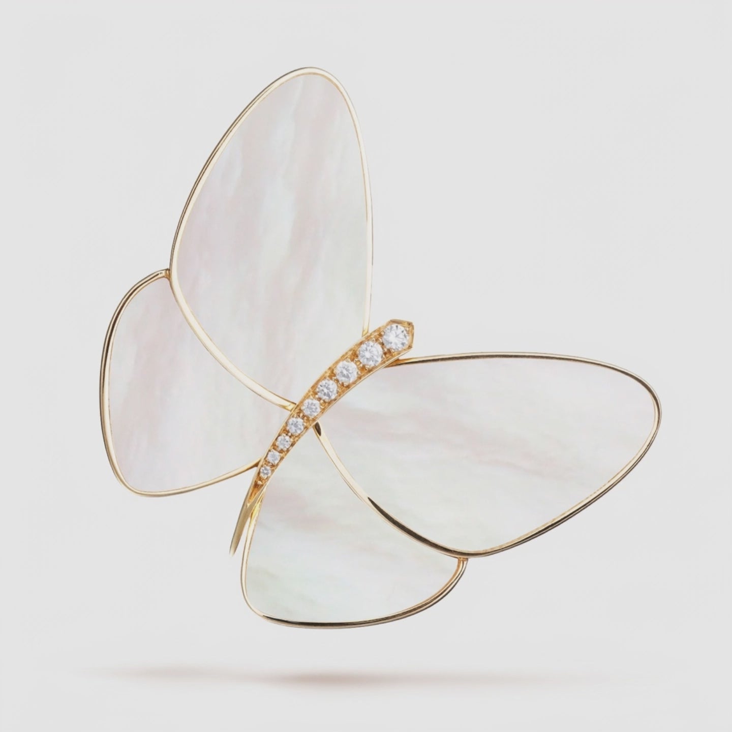 Moonveil Broş, sedef kanatların ayışığına benzer yumuşak parıltısını ince altın hatlar ve gövde boyunca dizilen minik taşlarla birleştirir; hareket ettikçe yüzeyde sakin bir ışıma akışı oluşur ve fotoğraflarda tertemiz okunur. Hafif ama etkisi net: beyaz gömlek yakasında zarif, koyu blazer üzerinde belirgin, ipek elbise omzunda tek bakışta “final dokunuşu”. Minimal çizgisi başka takılarla yarışmaz; ince halka küpeler veya sade bir zincirle kusursuz denge kurar, tek başına takıldığında bile görünümü tamamlanmış gösterir. Dengeli iğne mekanizması kumaşı çekiştirmez ve gün boyu yerinden oynamaz. İlk günkü ışıltıyı korumak için parfüm ve yoğun nemle teması sınırlayın, kullanmadığınızda kutusunda saklayın. Moonveil, gardırobunuza hafiflik ve serin bir gece ışıltısı ekleyen güvenilir imzadır.