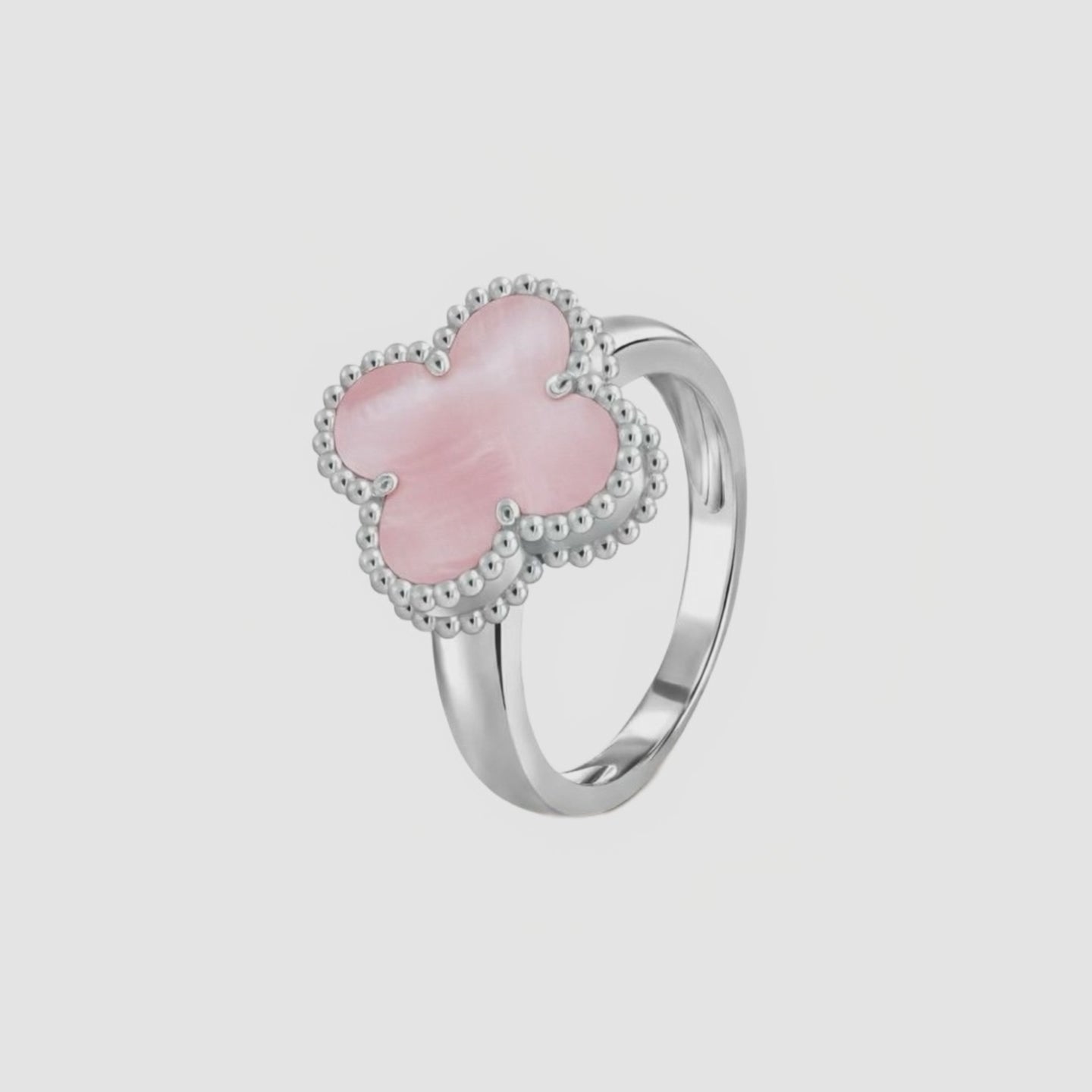 Zarafeti ve şansı bir araya getiren Radiant Clover Yüzük, dört yapraklı yonca formuyla pozitif enerjiyi simgeler. Pembe ve kırmızı taş seçenekleri, tasarıma farklı ruhlar kazandırırken, gümüş tonun modern ışıltısıyla bütünleşir. Günlük stilinize zarif bir dokunuş yaparken özel anlarda da sofistike bir tamamlayıcı olur.