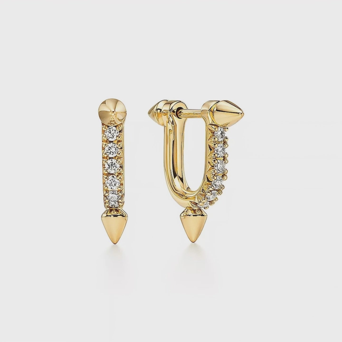 Cesur hatları ve zamansız tasarımıyla dikkat çeken Vetra Bold Küpe, modern kadının gücünü ve zarafetini tek bir formda buluşturur. Parlak altın tonundaki gövdesi, uç kısımlarındaki keskin detaylarla güçlü bir kontrast yaratırken, pırlanta efektli taş sıraları ışığı mükemmel şekilde yakalayarak her hareketinde parıldar.