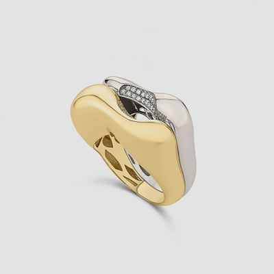 Kıvrılan bir heykel gibi... Xelvora, cesur olanın zarafetle buluştuğu yerde doğar. Mat altın ve parlak metalin akışkan geometrisi, her açıdan farklı bir hikâye anlatır. Takıda sınırları kaldıran bu parça, klasik formülleri yıkar ve kendine özgü bir stilin manifestosuna dönüşür.