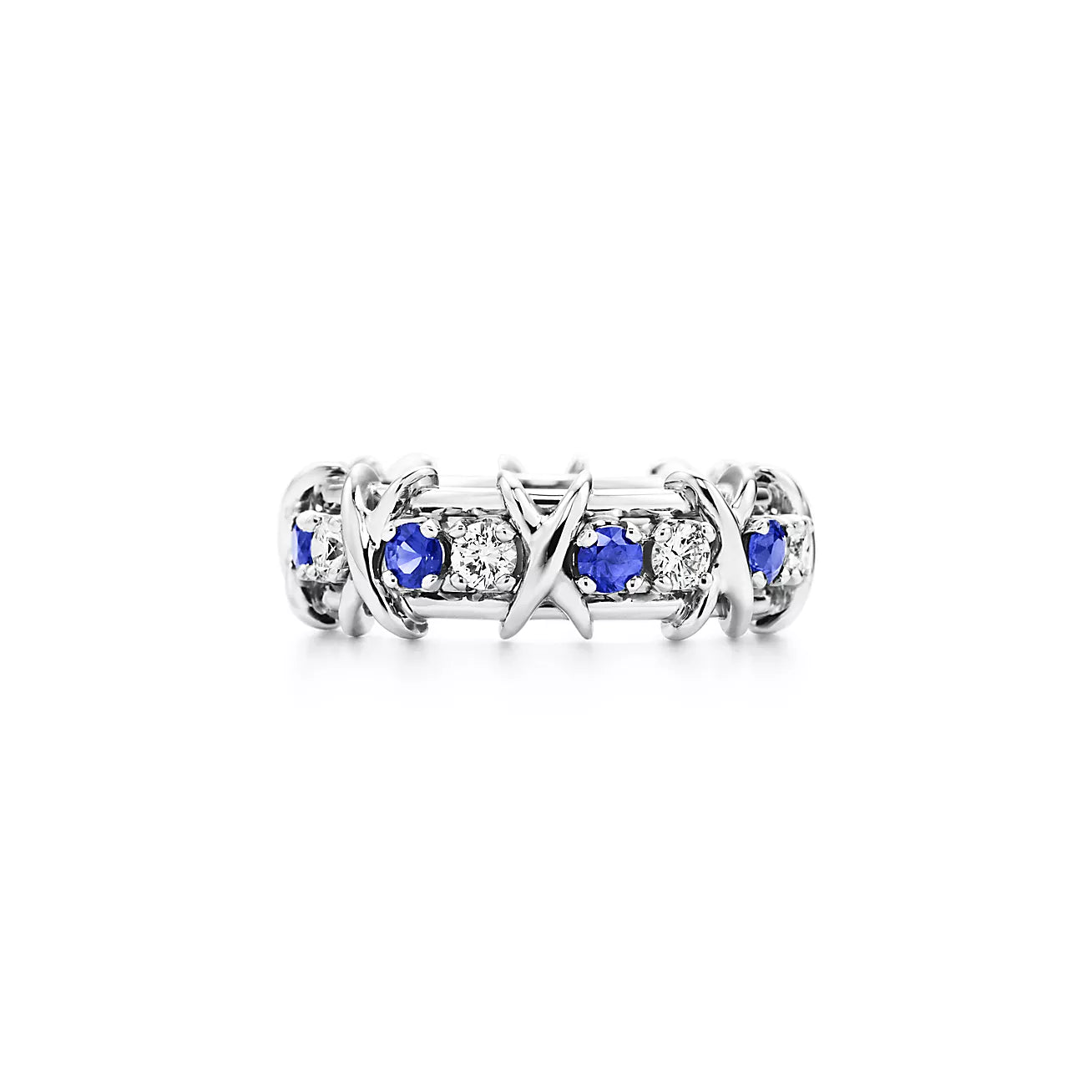 Polaris Sapphire Yüzük, safir mavisi ve buz beyazı taşları ritmik aralıklarla buluşturan X-claw mimarisiyle keskin bir ışık hattı kurar. Çapraz kollar, her taşı modern bir kafes gibi sarar; ışık kavşaklarda yükselir, üstten bakışta çizgi hâlinde parlar. Soğuk parlak platinimsi gövde, derin mavi tonun doygunluğunu öne çıkarır; yan profilde tekrarlayan “X” modülleri yüzüğe grafik ve heykelsi bir karakter verir. Profil bilinçli biçimde kompakt tutulmuştur—güçlü etkiyi yalın bir formda sunar, elde net bir otorite hissi bırakır.